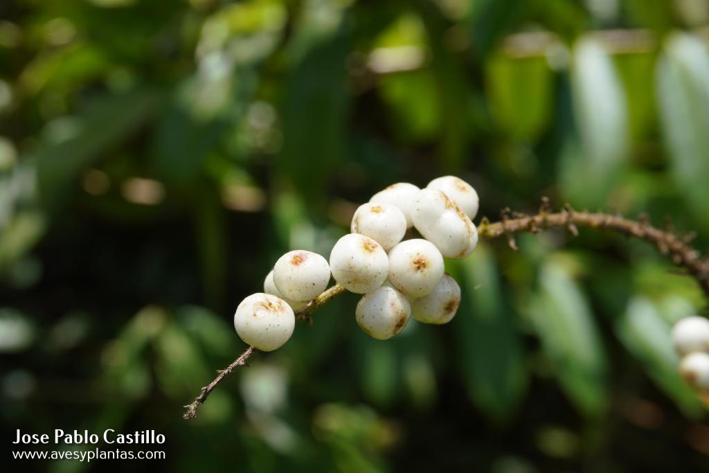 Familias de aves observadas alimentándose de sus frutos: Passerelidae, Ptilogonatidae, Thraupidae, Turdidae, Semnornithidae,