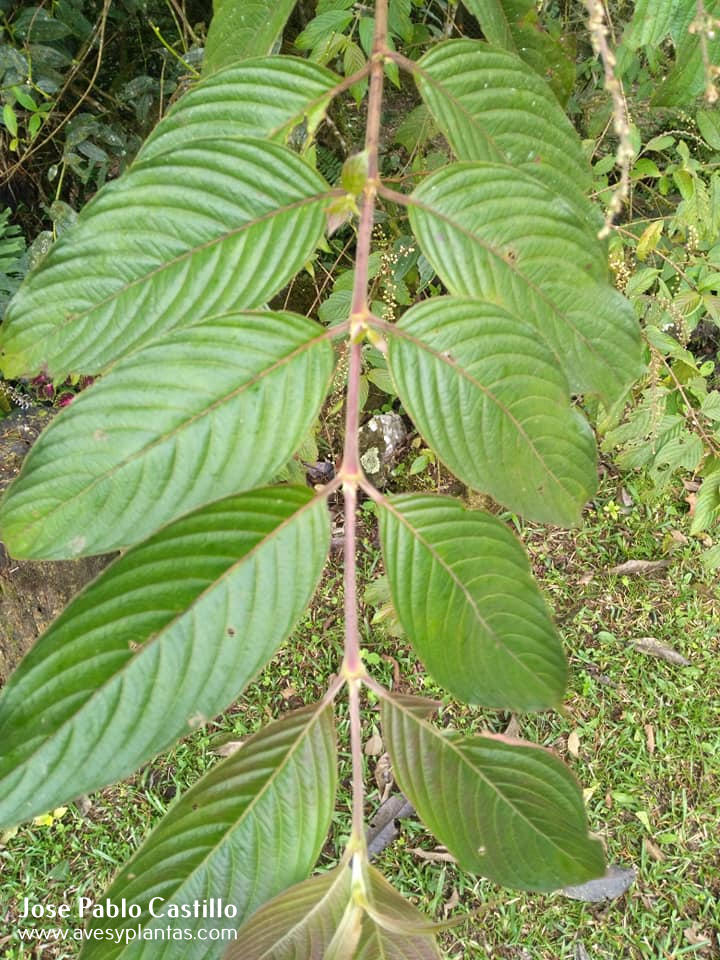Descripción: Arbusto o árbol pequeño de 2 a 6 m. Hojas simples, opuestas con estípulas con una larga arista. Inflorescencias terminales, racemosas, largas y colgantes con flores rosadas o rojizas. Frutos blancos. Frecuente en áreas abiertas y vegetación secundaria(1, 3).
