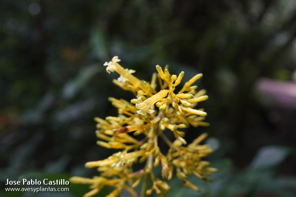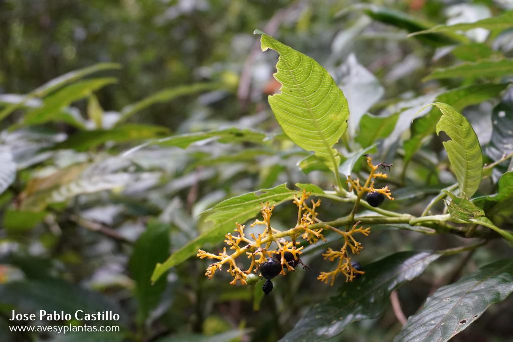 Descripción: Arbusto o árbol pequeño de 1 – 6.5 m. Hojas simples, opuestas, con estípulas con 2 lóbulos Inflorescencias verdes o amarillas, con forma de pirámide, corolas amarillo-verdoso o amarillas. Frutos morados a negros o azules. Flores y frutos la mayor parte del año (1). Especie muy variable