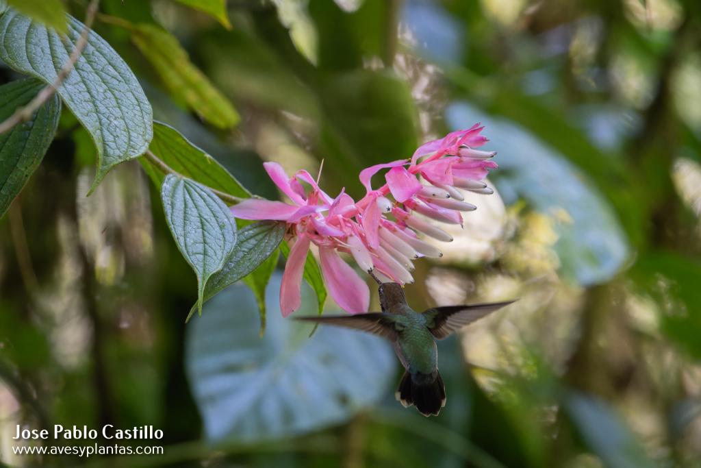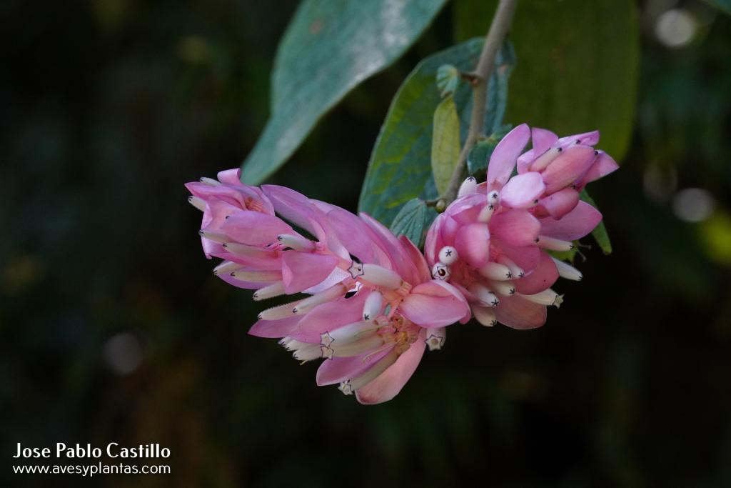 Descripción: Arbusto epífito de cerca de 3 m. Hojas alternas, con lámina de 7–23 x 1-10 cm, con ápice agudo a acuminado. Inflorescencias con brácteas florales rosadas a rosado oscuro. Flores blanco-rosadas, tubulares de 3.5 x 0.8 cm con lóbulos de los pétalos con borde morado-negro. Frutos morados a negro-azulado cuando maduros(1).