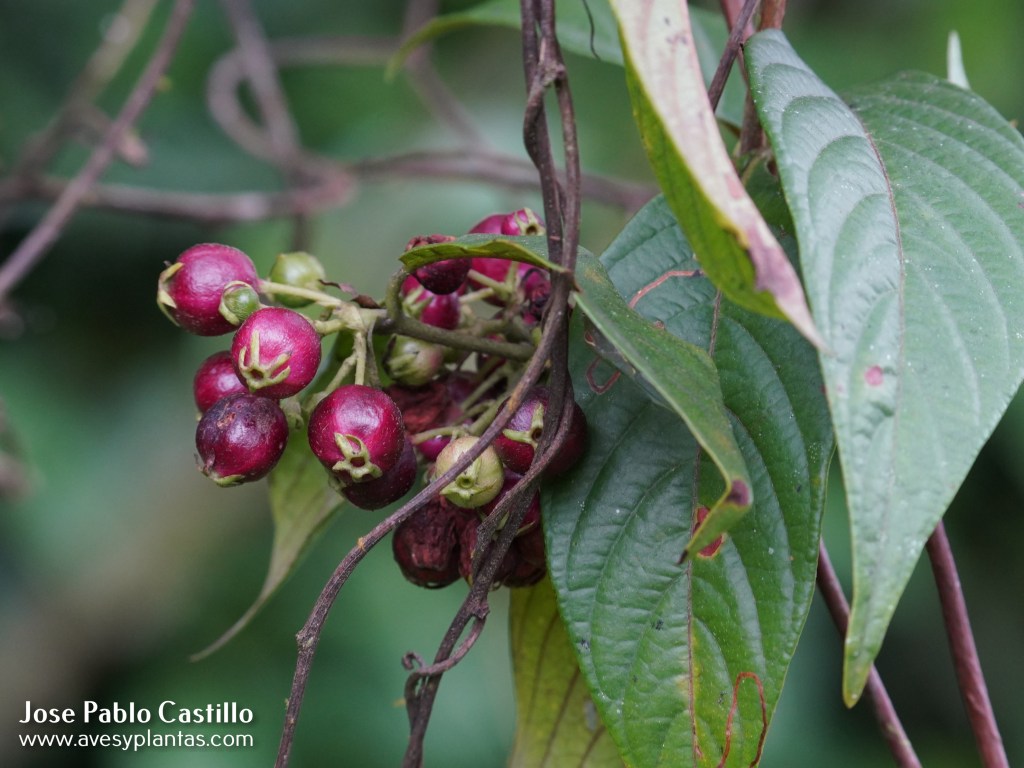 Familias de aves observadas alimentándose de sus frutos: Cardinalidae, Passerelidae, Thraupidae.