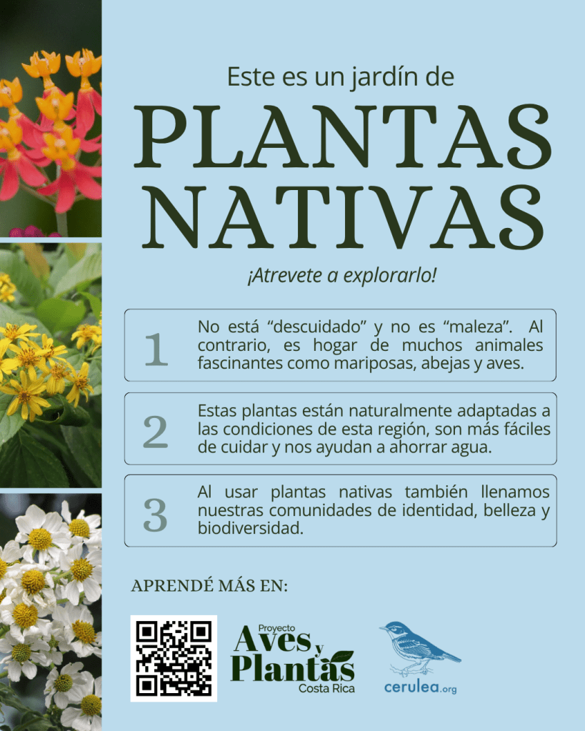 ¿Tenés un jardín de plantas nativas en tu casa o comunidad? Te invitamos a colocar esta información que ayude a que más personas aprendan y valoren la importancia y beneficios de utilizar flora nativa en nuestro parques, aceras, jardines, patios y otros espacios verdes.